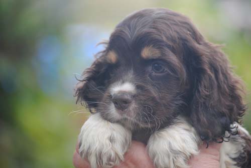 | Chocolate Parti Cocker Spaniel Male # 4 $1500 pet price Click here for more pictures of this wonderful fellow! |