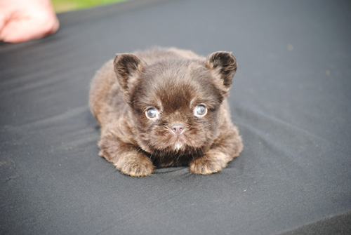 | Faux Frenchie Fluffy Chocolate Female # 1 $3900 pet price Click here for more pictures of this wonderful girl! |